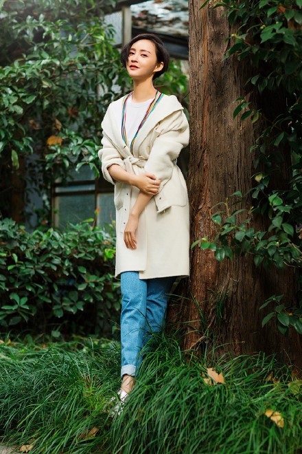 在看了张歆艺的杂志造型以后,再来看看二姐平时生活中是怎么穿搭的吧,二姐是一个非常率真洒脱的女人,所以生活中的穿着打扮也很朴素简约。一件束腰大衣颜色干净简单,非常大气。喜欢干净简单设计的女孩可以在衣柜里准备一件这样的浅色大衣,非常好搭配内搭和下装,还能提升气质,衬托气色。大衣里面张歆艺选择了一件非常简单百搭的白色T恤,"万能小白衫"自然是没话说了,是人人必备的"衣柜经典单品"。下半身一条淡蓝色牛仔裤非常经典大气,整套造型很干净很舒服,一点也不累赘不复杂。喜欢走简约风的妹子可以学起来了~