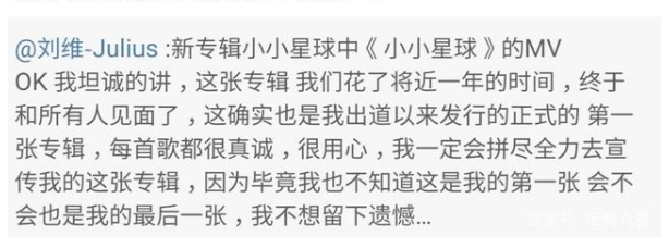 而作为那一届的冠军,刘维的发展却并不尽人意。之后为了在娱乐圈继续走下去,他也不得不转换身份,做起一些主持人的工作来。之后虽然参加了很多的综艺节目,但是音乐类型的确实是少之又少。所以这次他能自己做出一张音乐专辑来,让不少人大为感动。这么多年还能坚持自己的理想,这是多少人想却没能做到的事情。