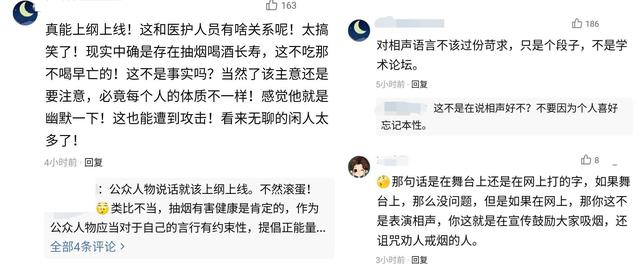 本来是很平常的两句话,也可以说是调侃的话语,但偏偏这两句话 引发了巨大的争议。很多网友纷纷指责周培岩三观不正,以调侃医护人员来严重误导大众的认知;还有的说,他表面上是劝导大家戒烟,实际是在诅咒那些劝导戒烟的医生,用心恶毒。