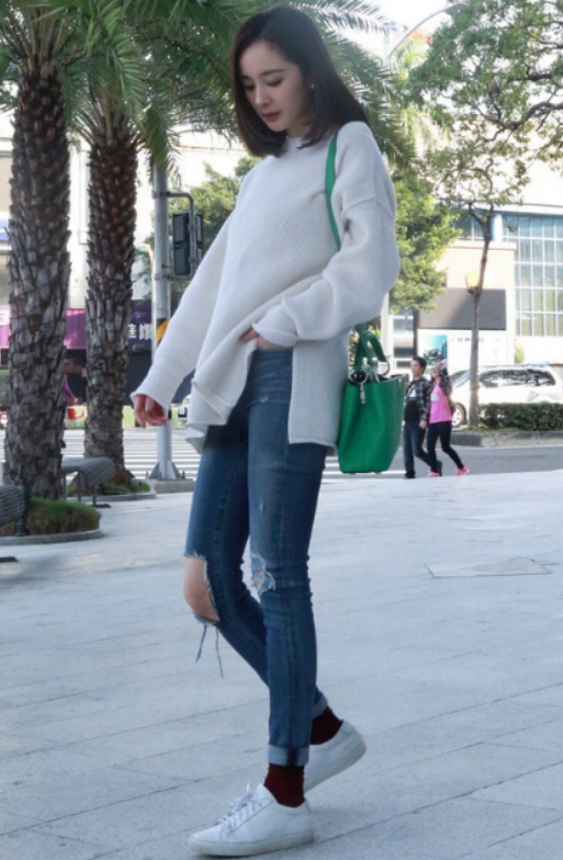 不得不说膝盖处挖空的款式真的是破的恰到好处,白色破洞毛衣配上解放天性的“拉丝裤”,这是酷与性感的完美结合。不需要搭配很夸张吸睛的衣服,只需一件简单白色T恤就能凹出活力十足的青春范儿!