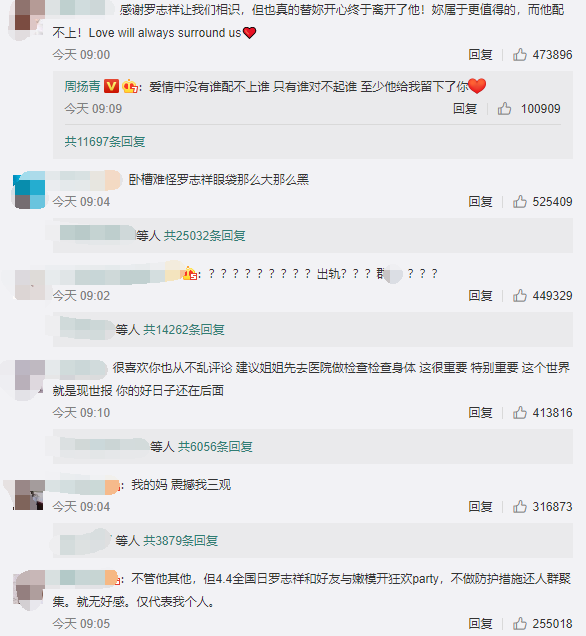 有网友说罗志祥不配,周扬青属于更值得的,也有网友让周扬青去检查身体的。很多人都心疼周扬青,在一起9年都没有结婚,还浪费了9年的青春。