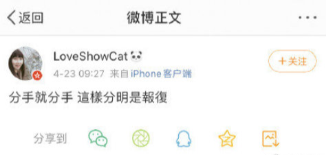 在周扬青发文痛斥罗志祥渣男行径两个小时候后,疑似罗志祥化妆师回应#罗志祥周扬青分手一事:分手就分手,这样分明是报复!(现在已经删除)。该博主简介中写道“喜欢吃喜欢买喜欢猪”,而罗志祥的英文名叫Show Lo。