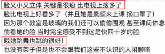 吴昕的长相和身材一直都被网友嘲笑脸大小腿粗,但是这位网友却爆料,自己看到的吴昕和电视上的吴昕相差很远,她看到的吴昕脸又小又立体,关键是非常瘦。吴昕还是素颜来上课,跳舞跳得很好,没有一点明星的架子。
