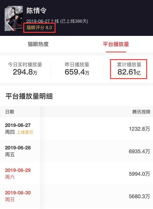播出一年之久,陈情令的播放量已经达到了82.61亿,而评分更是达到了8分,这样的高评分和高播放量,在网剧中属于佼佼者。