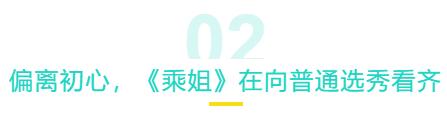 相比寻找中国新女团、考虑择选标准,节目组的重点还是放在节目怎么做才能更好看上,无论的歌曲设置还是后期剪辑,《乘姐》都在慢慢变味,想普通选秀偷偷过渡。