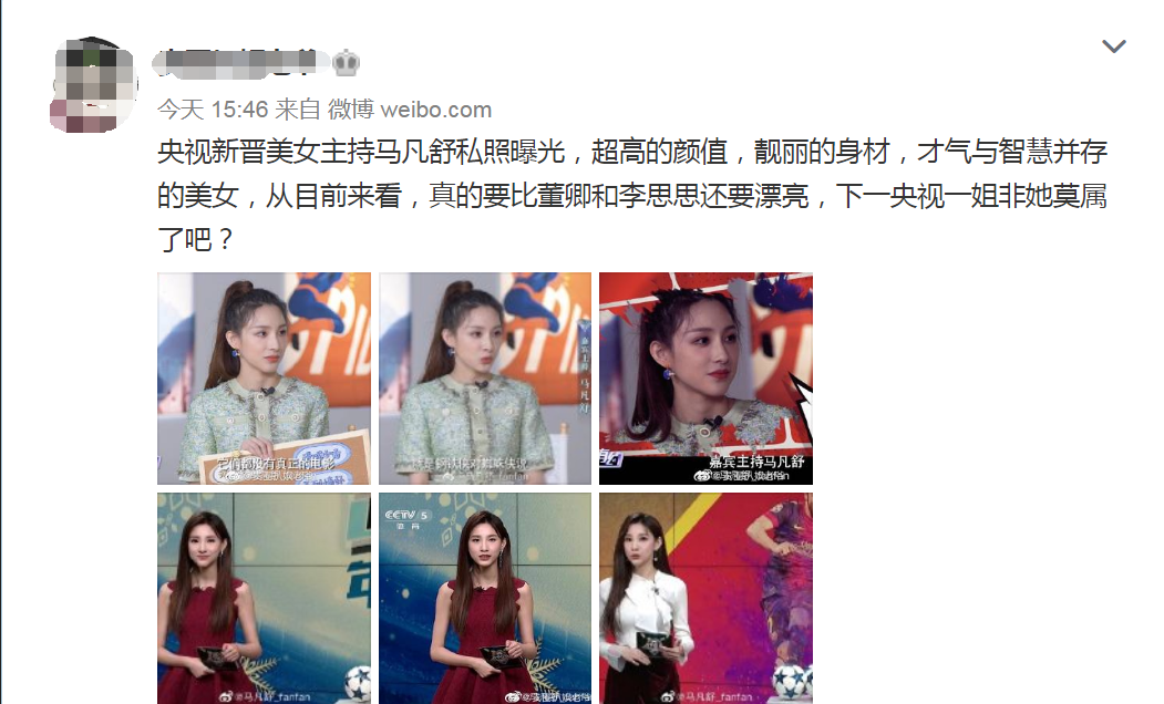 7月28日,有网友发文称:央视新晋美女主持马凡舒私照曝光,超高的颜值,靓丽的身材,才气与智慧并存的美女,从目前来看,真的要比董卿和李思思还要漂亮,下一央视一姐非她莫属了吧?