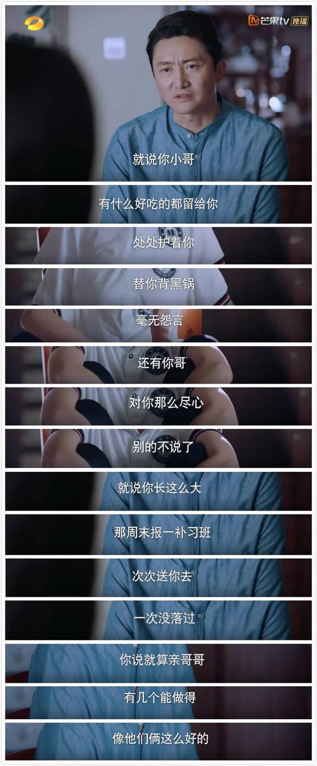 凌霄贺子秋出国留学后,李海潮曾经劝过李尖尖。这么多年的情份,你至于吗?小哥什么时候都让着你,有好吃的东西总会留给你,处处护着你,替你背黑锅,毫无怨言。还有你哥对你那么尽心,周末你一报补习班,次次送你去,一次没落下。就算是亲哥,又有几个能做到他们这么好的。