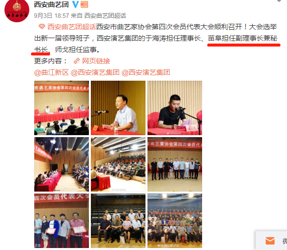 最后想说,人们喜欢的才是有口碑的,不能一直站在高雅的姿态上要求众人。还有,以后不能叫相声演员苗阜,而是“苗秘书长”了,最后小编"热烈”祝贺苗阜先生当选西安市曲艺家协会副理事长兼秘书长。