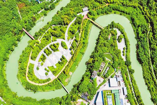 鸟瞰綦江通惠河亲水带状公园。(受访者供图)