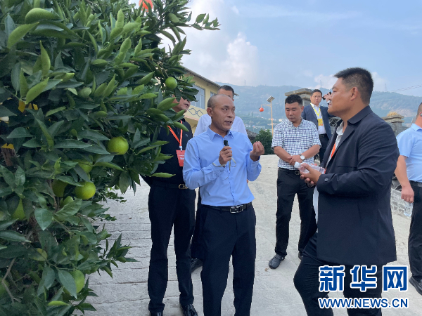客商了解奉节脐橙种植情况。新华网 邵以南 摄