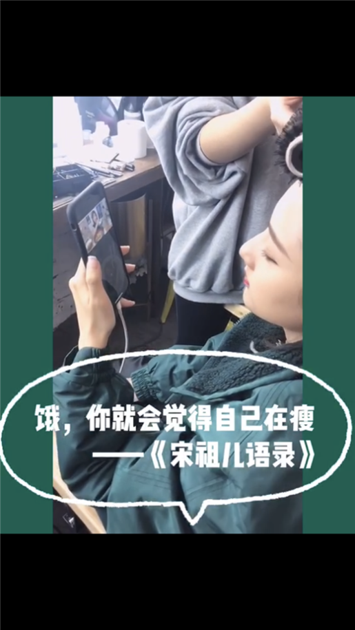 视频中工作间隙的宋祖儿正在津津有味的收看吃播视频。减肥中的宋祖儿一边说着:“好饿啊”,一边看着视频里的烤牛舌披萨感叹:“甜甜辣辣的,太好吃了”,并表示自己看了一天的视频,现在非常想吃牛油果和温泉蛋。而当听到工作人员询问会不会越看越饿时,宋祖儿则表示:“饿,你就会觉得自己在瘦”,随后还打了一个可爱的饱嗝。