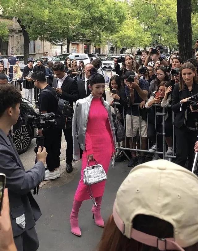 孟美岐的造型相当大胆,狗啃刘海,丸子头,芭比粉连衣裙,粉色过膝长靴,太空银外套,银色手提包,这些都是一般人不敢尝试的元素。