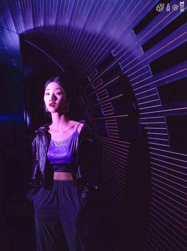 精修图中的孟美岐,皮肤白皙,身材婀娜,眼神凌厉,看上去很酷的样子。