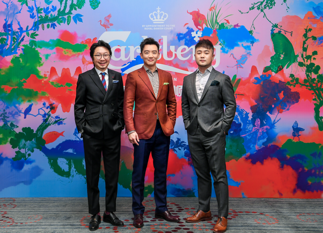 左起嘉士伯中国市场副总裁简赵辉,知名演员郑恺,国际新锐艺术家张广宇
