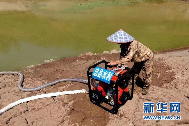 工作人员在重庆忠县复旦村抽取水保饮水和灌溉。新华网 发