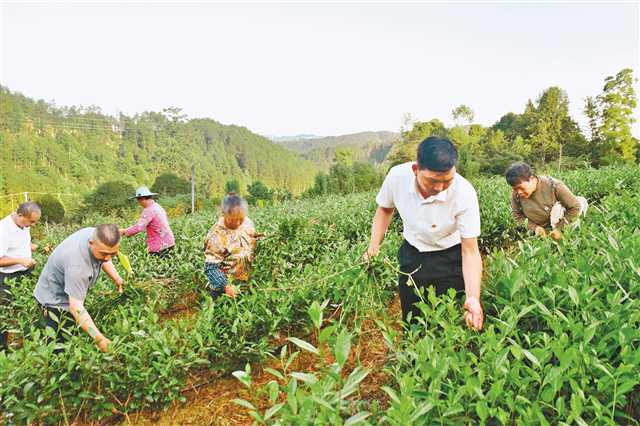 6月27日,南川区河图镇长坪村“党群小家”成员在茶园基地帮助村民除草。记者 苏畅 实习生 李金倩 摄/视觉重庆