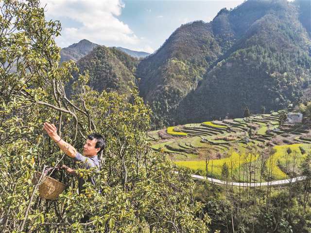 3月28日,巫溪县蒲莲镇兴鹿村,千年老鹰茶古树嫩叶出得晚些,但每到采茶时节,仍有不少村民攀上树采集春天的第一批叶子。