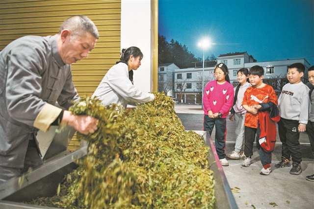 3月28日,位于巫溪县蒲莲镇的老鹰茶加工厂,老鹰茶叶的加工吸引了不少小朋友观看。