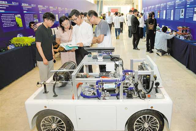 4月29日,在重庆市高校科技成果与产业技术需求发布对接会上,重庆交通职业学院展示了自主开发的氢动力汽车教学平台。记者 张锦辉 摄/视觉重庆