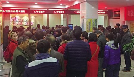 现场:网点换卡排起长队