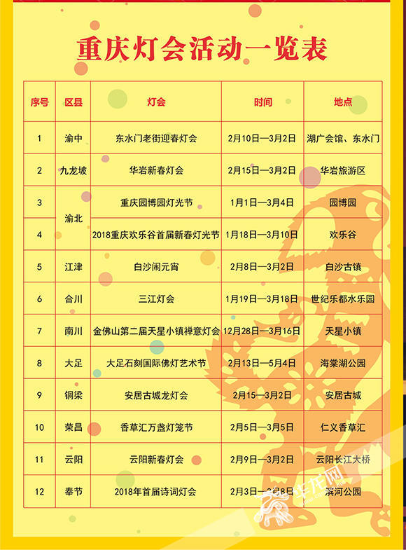 2018重庆灯会活动一览表。重庆市地理信息中心供图 华龙网发