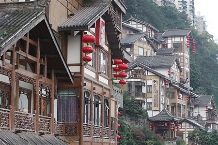 其实,早年的洪崖洞就曾辉煌过,而“洪崖滴翠”一直是重庆的一大景观。直到解放后随着沿江码头的衰落,洪崖洞才逐渐失去了昔日的红火。不过在重庆小天鹅集团2006年推出那一幢幢仿古吊脚楼后,这里又成了重庆城的新景点。